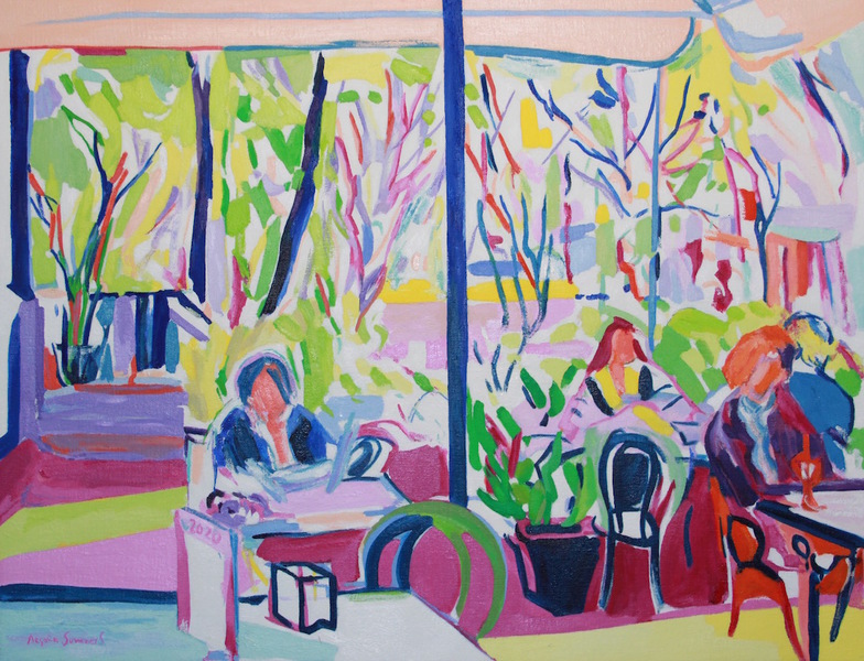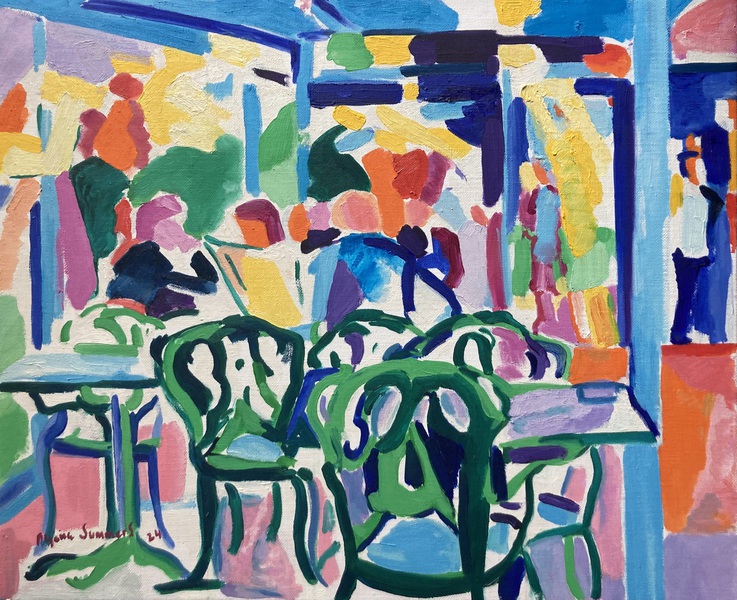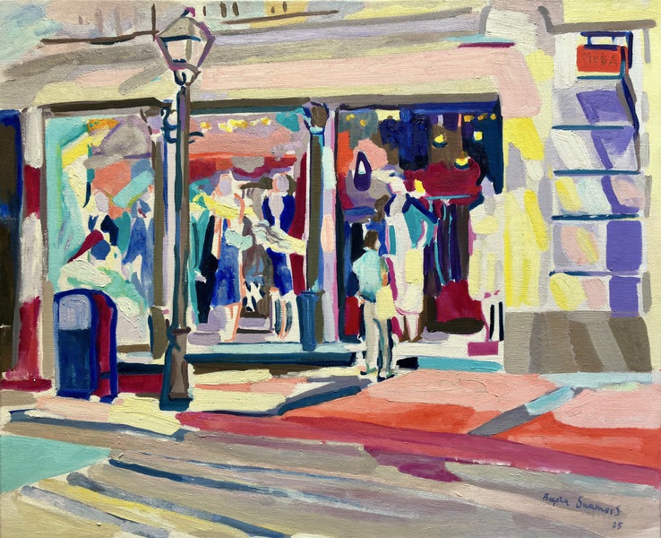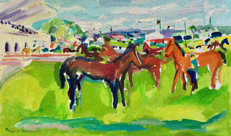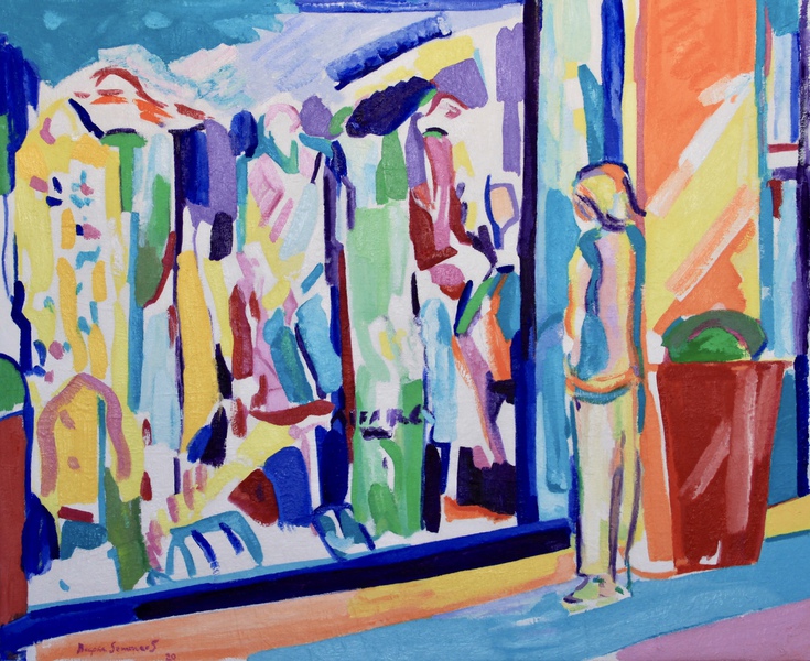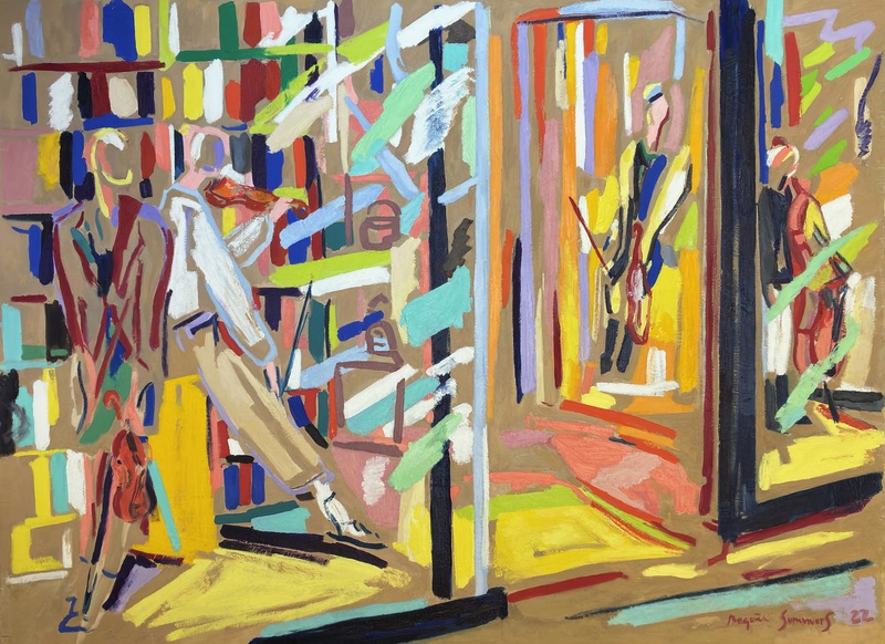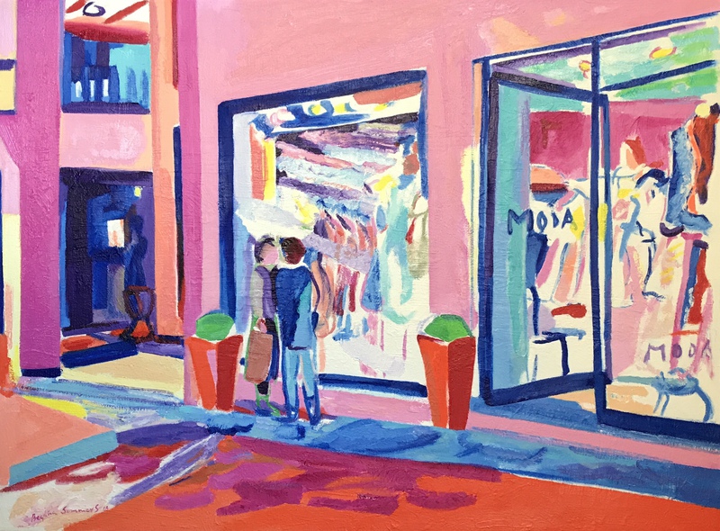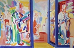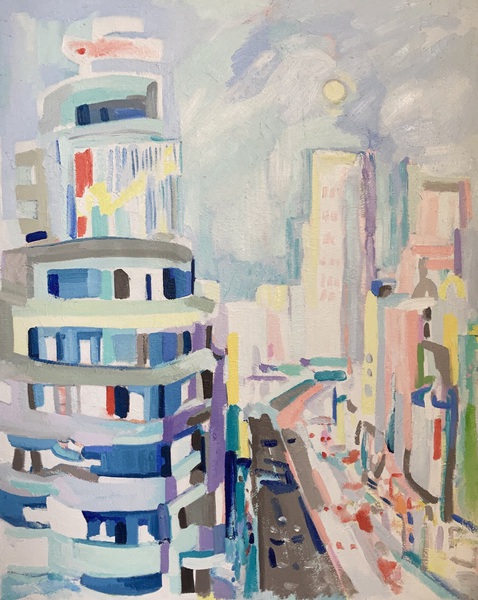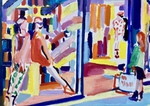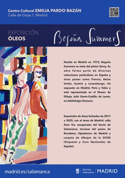 Exposición dedicada a Madrid, con sus cafés de Recoletos, escaparates del barrio de Salamanca, vistas de la Gran Vía, carreras de caballos del Hipódomo de la Zarzuela, y una carpeta